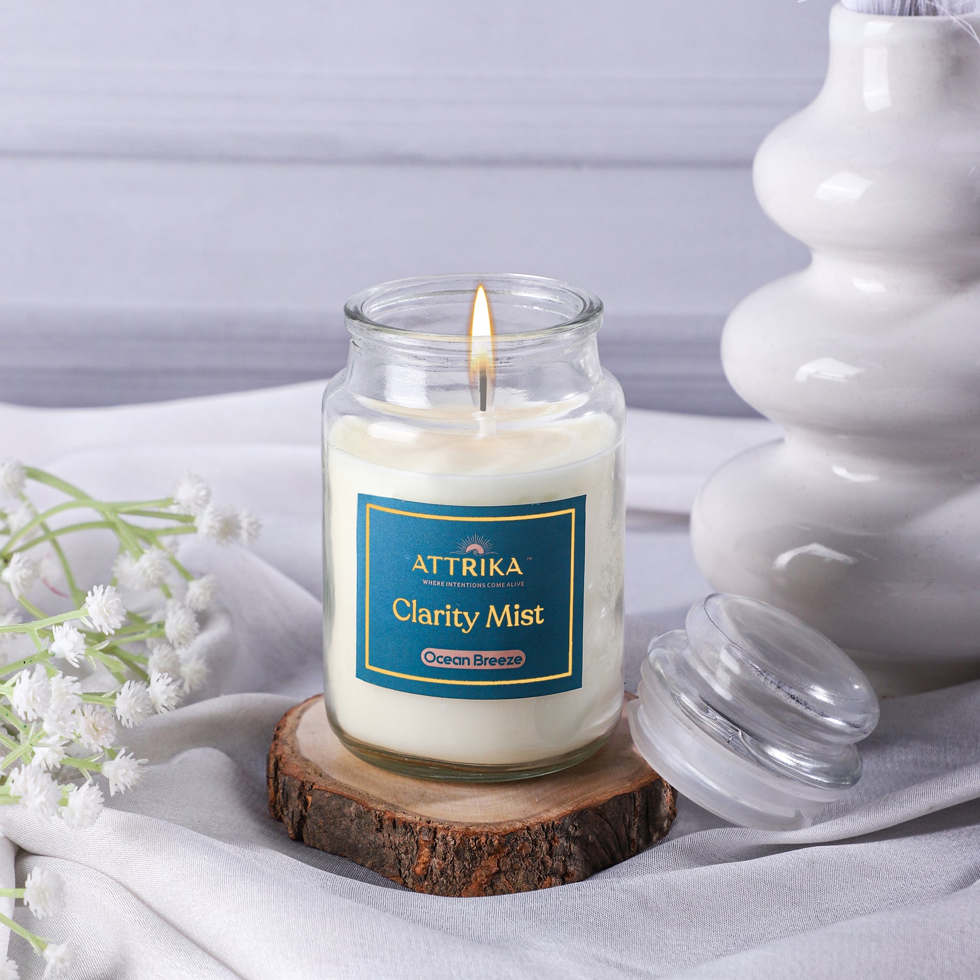 The Clarity Mist Candle is your companion when you feel clouded, distracted, or heavy with overthinking. Infused with the crisp and refreshing Ocean Breeze fragrance, this candle is designed to awaken your senses and create a space of mental clarity and inspiration.